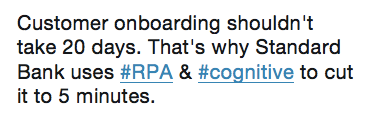 This oblique testimonial approach flatters the bank for embracing innovation at the same time as it promotes the value proposition of the vendor’s software.